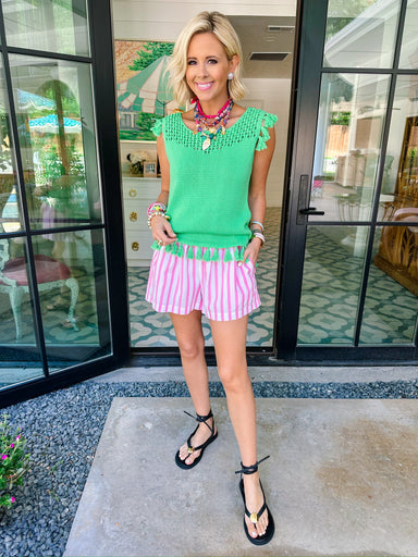 The Sylvie Stripe Top is sweet, flirty, and full of charm. Pink and red stripes meet cute bow details on the cuffs for an extra touch of fun. Perfe...