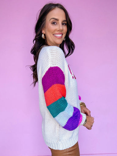 RIGHT ON CUE CHUNKY KNIT CARDIGAN - RAINBOW