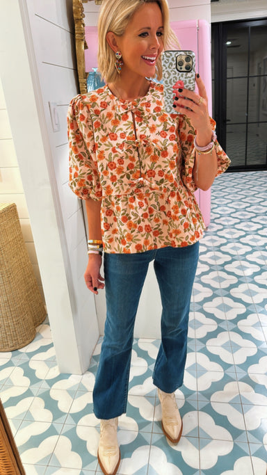 THIS IS A FINAL SALE ITEM The Pops of Florals Peplum Top is a fun and flirty addition to your wardrobe, with darling floral details that bring a p...
