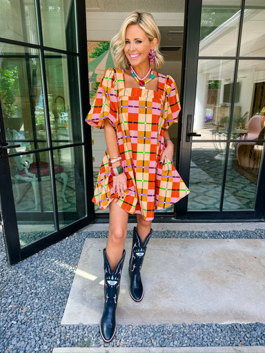 THIS IS A FINAL SALE ITEM The Hidden Paths Puff Sleeve Dress brings a modern twist to classic plaid with her flirty mini length and puff sleeve de...