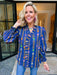 IN THE RIGHT DIRECTION FLORAL VINE LONG SLEEVE TOP - BLUE
