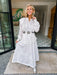 Sweep into charm and elegance with this dreamy white midi skirt set. The long-sleeve top delights with delicate ruffles and intricate lace-like patterns that move beautifully with every step. Perfect for brunch in sandals, western outings with boots, or a flirty date night with heels, she’s romance in motion.