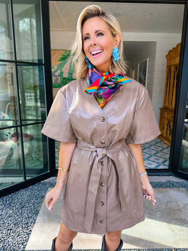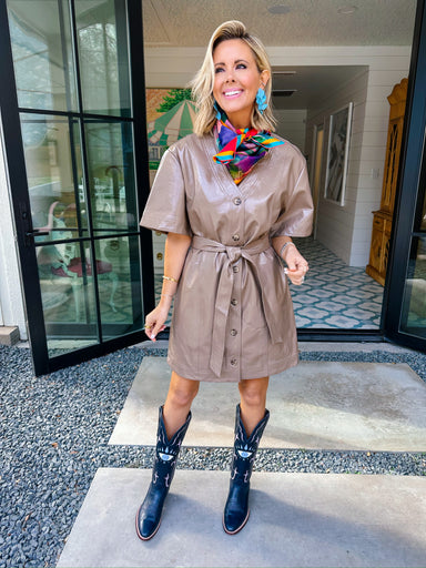 The Ceratina Leather Button Up Dress is sleek with a little western edge. Smooth leather and a structured button up silhouette make her a standout ...
