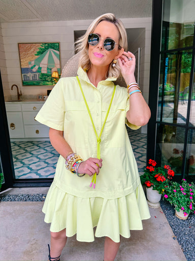 The Jade Jewel Dress blends classic elegance with a touch of playful charm. Her rich color and flattering silhouette make her perfect for weekend b...