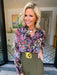 SHEER DELIGHT FLORAL BUTTON UP TOP -BLACK