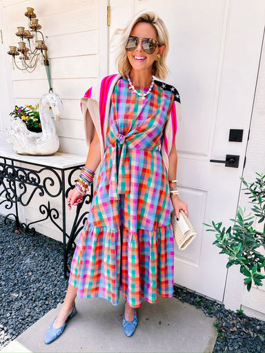 The Gillian Colorful Gingham Watercolor Midi Dress is sweet, artistic, and full of charm. Soft watercolor gingham gives this classic silhouette a p...