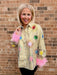 - Features: Button Up, Feather Trim Cuffs, Sequins, Rhinestones