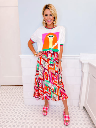 THIS IS A FINAL SALE ITEM The Kingsley Jungle Toile Skirt in ivory is a dreamy mix of vintage vibes and wild energy with its playful print and flow...
