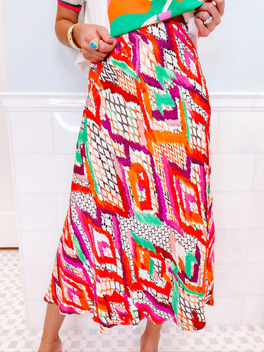 GEORGIE GINGHAM MIDI SKIRT - RED