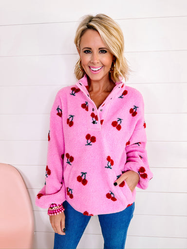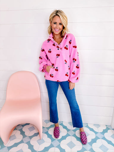 The Cherry On Top Cardigan is the perfect finishing touch for any outfit. Sweet cherry details and a cozy fit make her a standout layer. Ideal for ...