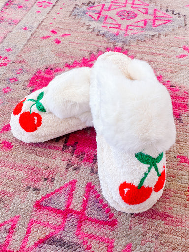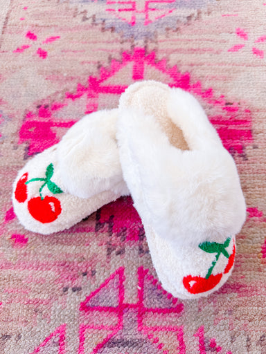 Step into comfort and cuteness with the Cherry Fuzzy Slippers in white. Super soft and plush, they are perfect for cozy nights in, lazy mornings, o...