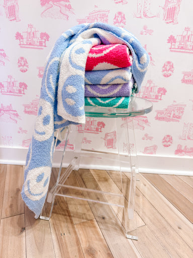Brighten up any cozy moment with the Happy Face Throw Blanket in neon green and pink! Featuring cheerful smiley motifs and super-soft fabric, it’s ...