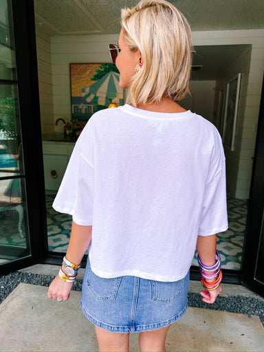 Simple, meaningful, and easy to wear. The Pray Crop Tee in charcoal features a relaxed cropped fit that pairs perfectly with high-rise denim, jogge...
