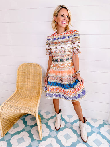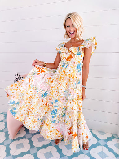 THIS IS A FINAL SALE ITEM The Frolicking Florals Midi Dress is a burst of playful charm with vibrant florals that make every day feel like summer....
