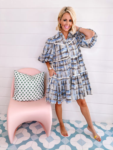 LA CITRON PLAID PUFF SLEEVE MIDI DRESS