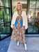 The Eloise Floral Smocked Bow Midi Dress in Brown blooms with autumn charm through her delicate florals and flattering smocked bodice. She is perfect for farmers markets, coffee dates, or casual afternoons when you want an easy touch of femininity. Pair her with ankle boots and a denim jacket for a laid back fall vibe. She is the dress that makes everyday moments feel a little more special.