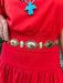 Polished metal conchos give her classic western charm. She’s finished with a clasp and looks effortlessly chic thrown over a sweater dress, denim, or skirt for an instant style upgrade.