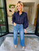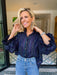 The Read Between The Tinsel Lines Stripe Top in Navy adds festive fun with a playful twist. Her sparkling stripe detail brings just the right touch of holiday cheer to any outfit. Pair her with jeans, skirts, or tailored pants for a look that’s cheerful, stylish, and full of personality.