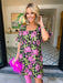 STOP & SMELL THE ROSES JACQUARD DRESS - BLACK/PINK