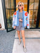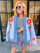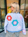 SWEET AS CAN BE HONEY COMB BLOOMS QUILTED JACKET - BLUE
